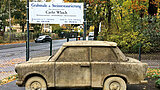 Trabi-Skulptur aus Sandstein
